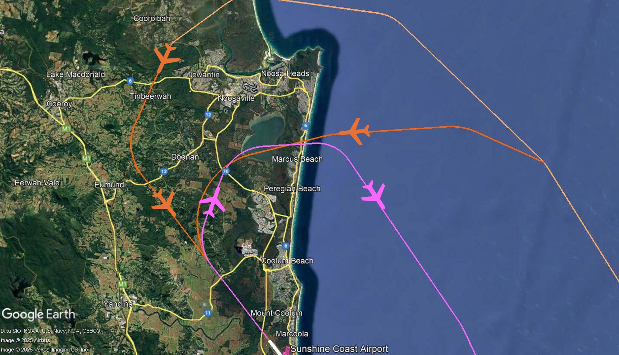 We were asked for information on the number of movements on each flight path servicing Sunshine Coast Airport.